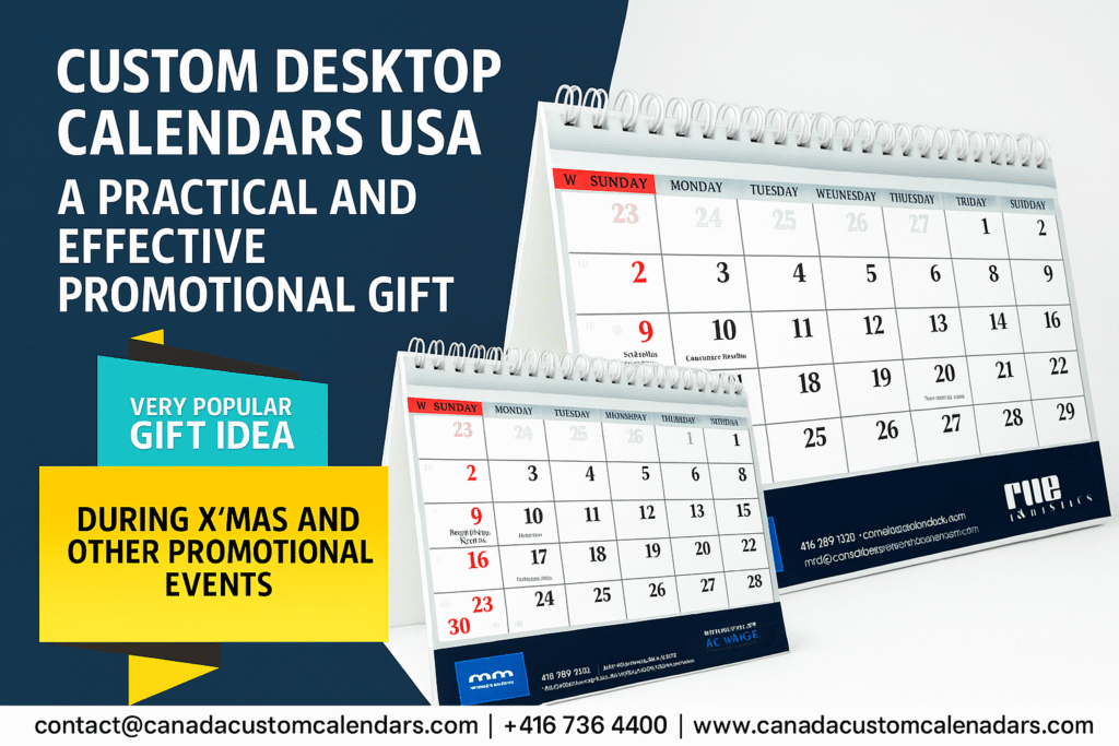 Increase your marketing effectiveness by getting your promotional game on up with a customized Desktop calendar USA. Small, yet powerful, these calendars fit snugly on desks and serve as an ideal daily companion. Each month, they help keep your company’s name in the forefront in a subtle manner.